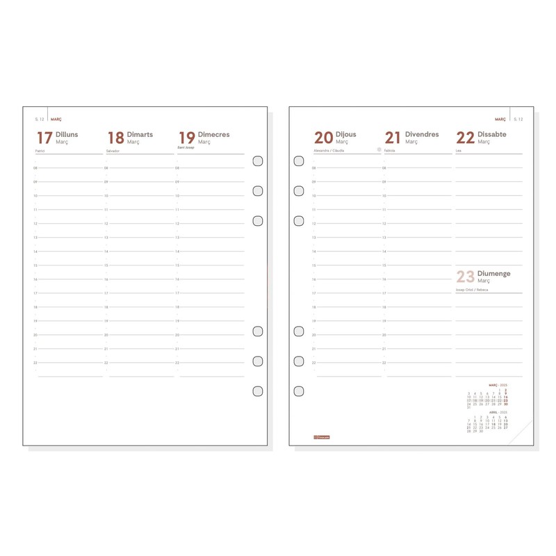 Finocam - Annual Open 2025 Weekly Vertical View Refill January 2025 - December 2025 (12 months) Catalan