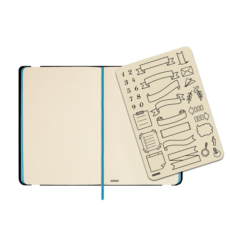 - Inside: dotted dotted For free writing in horizontal and vertical directions or for lettering and drawings. Ideal for creating your own bullet journal. Stencil with different silhouettes for easy decoration. Item without text
