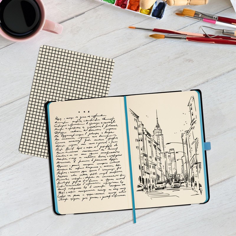 • Inside: Plain. Freedom to write and draw. Template with horizontal ruling and grid for tidy writing. Item in no language.