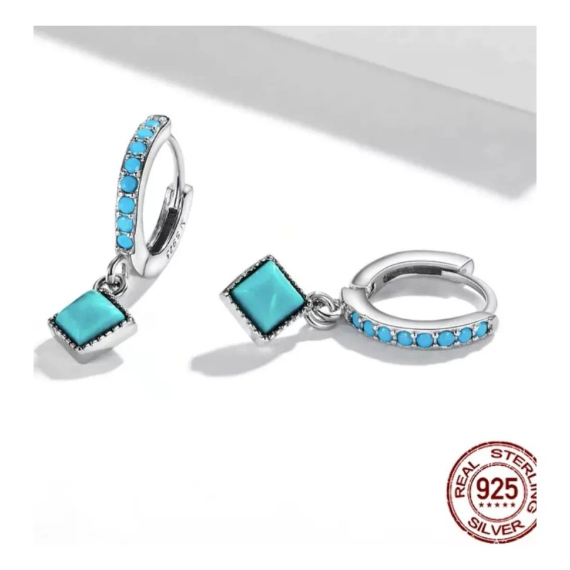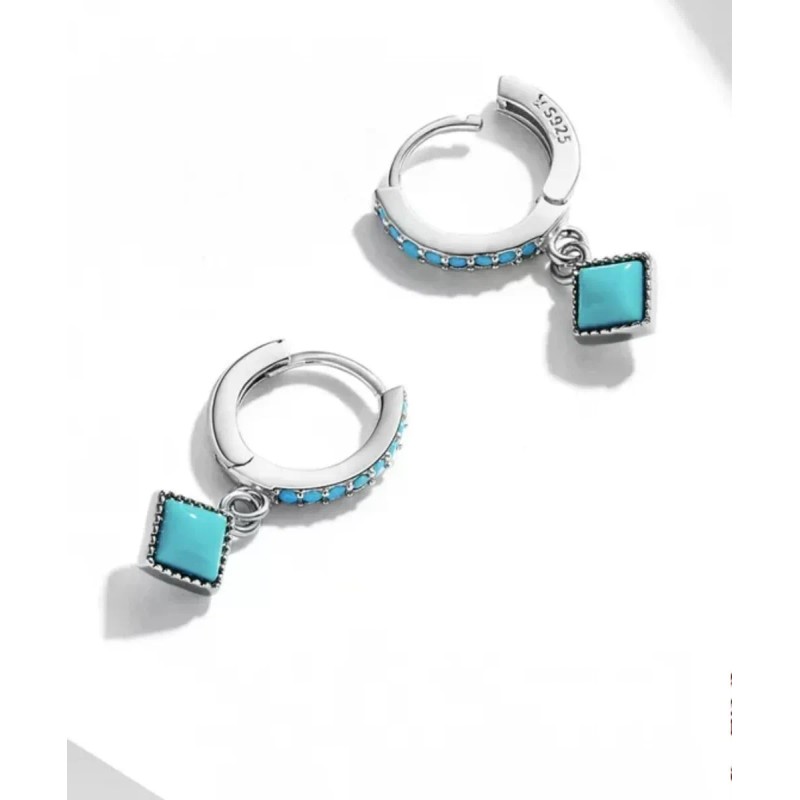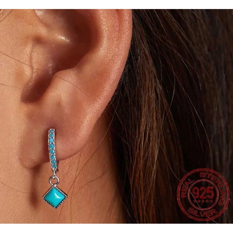 Finos Aretes Plata S925 Huggies Minimalista Piedra Turquesa