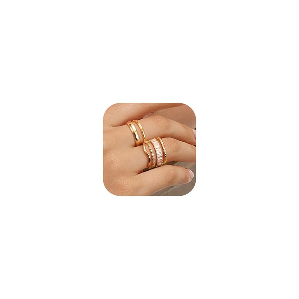 • Versatile Gold Ring Sets: This gold ring set for women includes 6 unique styles include CZ ring, wave ring, chunky ring, ect. These stackable rings can be worn as thumb rings, wendding rings or knuckle rings, offering endless styling options for everyday fashion or special occasions. Unique design and excellent quality for the most precious you.