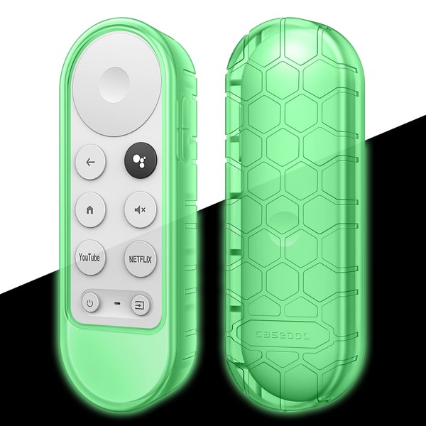 Fintie Protective Case for Chromecast with Google TV HD 2022 / 4K 2020 Voice Remote - CaseBot Lightweight (Anti-Slip) Shockproof Silicone Cover for Chromecast Voice Remote Controller, Green Glow