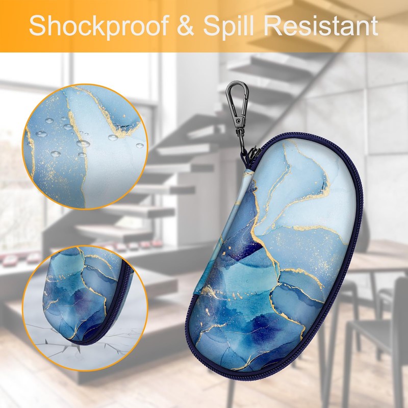 Fintie Sunglasses Case with Carabiner, Hard Shell Shockproof Sport Glasses Cases Travel Zipper Eyeglasses Holder, Ocean Marble