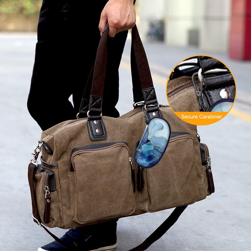 - Designed with carabiner hook, this eyewear case could be conveniently attached to your handbag, backpack or tote bag. Secure zipper closure lock in your eyeglass safe inside.