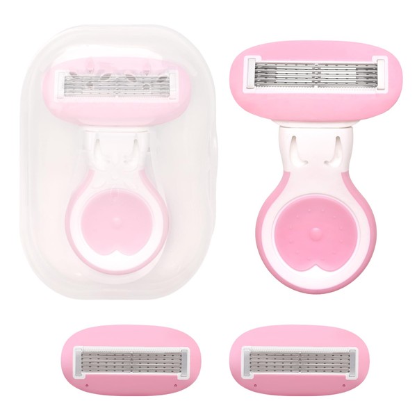 Fiohiros Mini Travel Razor for Women, Mini Travel Essentials 5-Blade Safety Shave Kit with 1 Razor, 2 Refills & Case for Legs, Hands, Arm