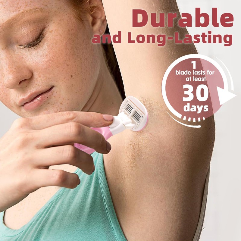 - 【Five Premium Blades】Experience smooth, scratch-free hair removal with 5 ultra-thin, aloe-enriched blades that glide effortlessly over wet skin. The moisturizing soap head activates with water, creating a protective layer to minimize irritation and deliver a close, comfortable shave for legs, arms, and body.