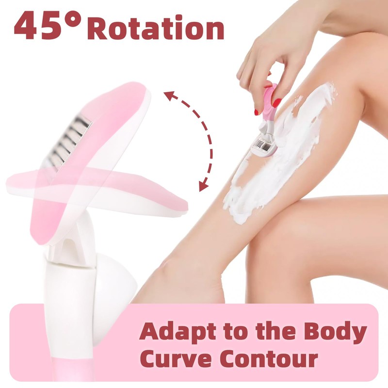 - 【 Non-Slip Grip】The ergonomic silicone handle features a non-slip design for secure handling, even in wet conditions. Its 45°adjustable pivoting head adapts to body contours—knees, ankles, and curves—ensuring a precise, effortless shave without missed spots or nicks.