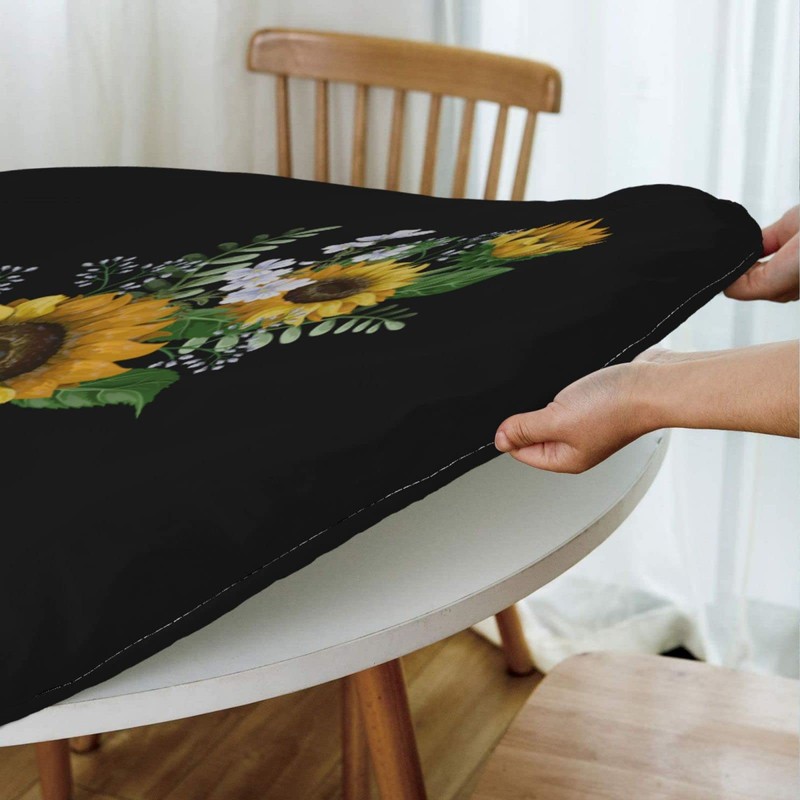 Fiokroo Sunflowers Tablecloth with Elastic Edge, Round Table Cloth Washable Reusable Table Cover for Kitchen Dining Party Picnic, Small