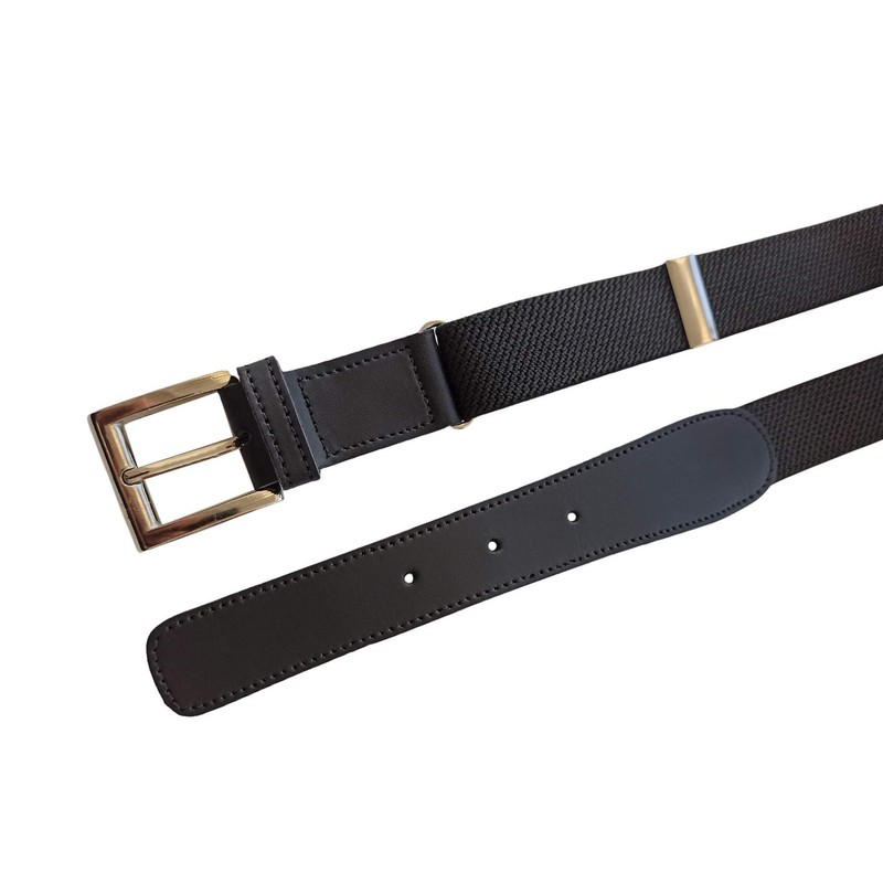 - 1) [DESIGN]: The men's elastic belt is made of first class textile and genuine leather at both ends, with contrasting leather stitching details with Silver Buckle closure. In addition, it features a modern, classic, elegant, sport and durable style. Made and Designed in Spain