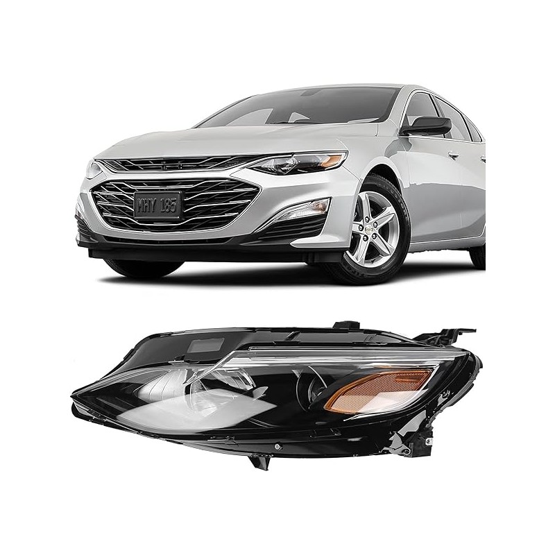 FIONE - For Chevy Malibu Headlight Assembly 2019 2020 2021 2022 Replacement Halogen Headlamp Projector Left Driver Side 84680167 84650573 GM2502498 LH