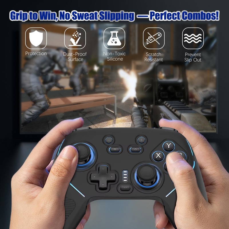 - 【Grips & Comfort】Features textured patterns that prevent slipping and reduce hand fatigue during extended gaming sessions; The ergonomic design keeps your hands comfortable for competitive play