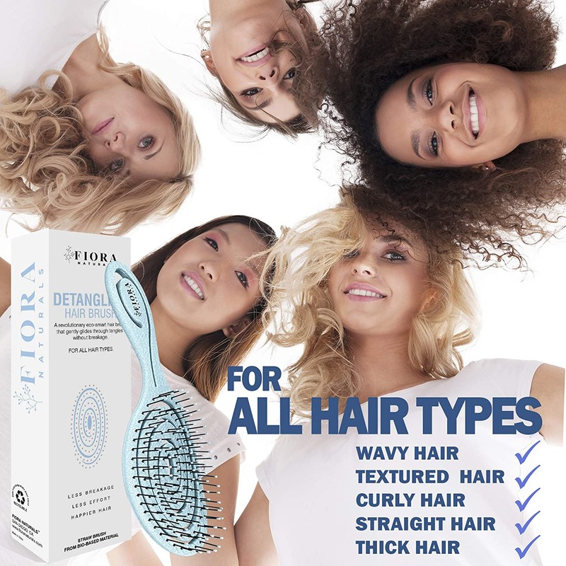 Fiora Naturals Hair Detangling Brush -100% Bio-Friendly Detangler hair brush w/ Ultra-soft Bristles- Glide Through Tangles with Ease - For Curly, Stright, Women, Men, Kids, Toddlers, Wet and Dry Hair