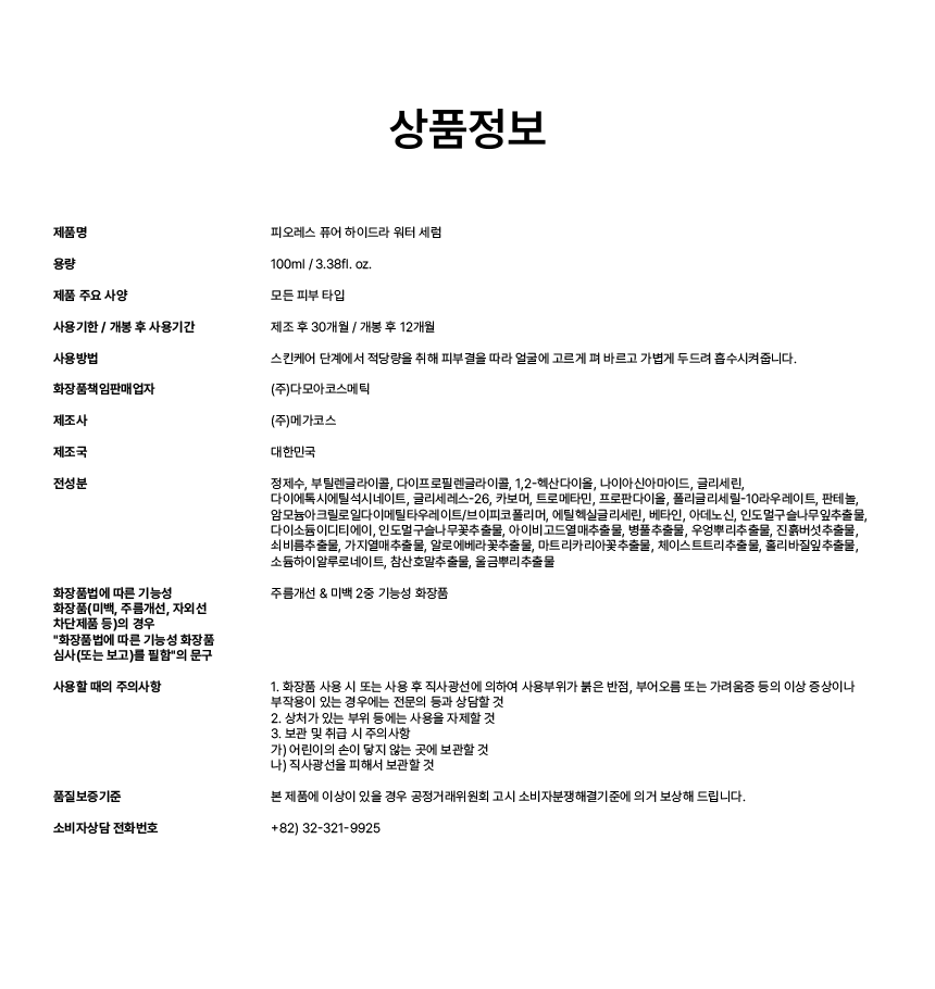 피오레스 퓨어 하이드라 워터 세럼 100ml