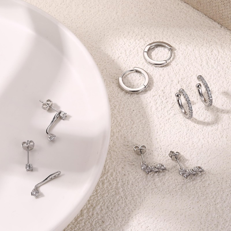 - Earrings set for women and girls: this silver earring set includes ear cuff, leaf stud earrings, ear jackets and hoop earrings. The curated collection gold or silver earrings and stud earrings are all uniquely versatile and are ideal for complementing your everyday outfits.