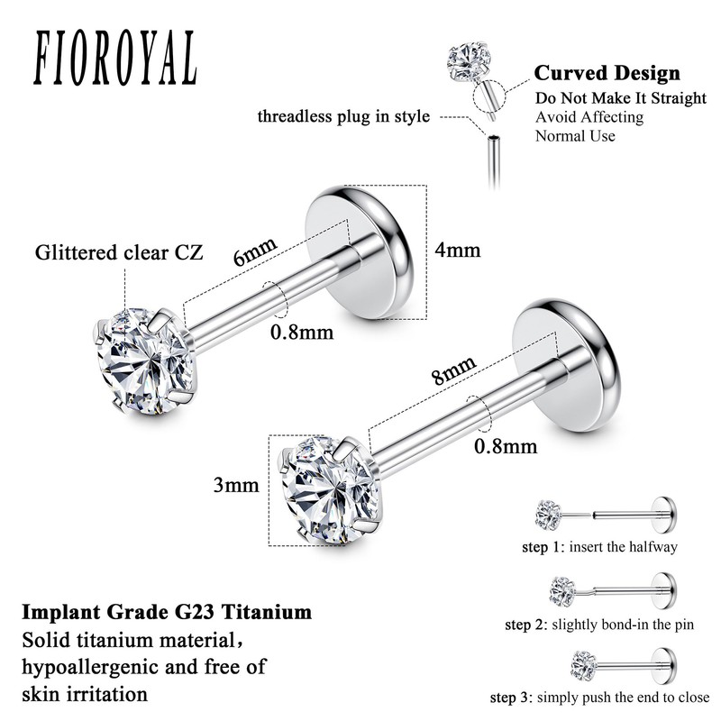 FIOROYAL G2 Titanium Lip Piercing 16G 20G Nose Piercing Threadless Push In Me...