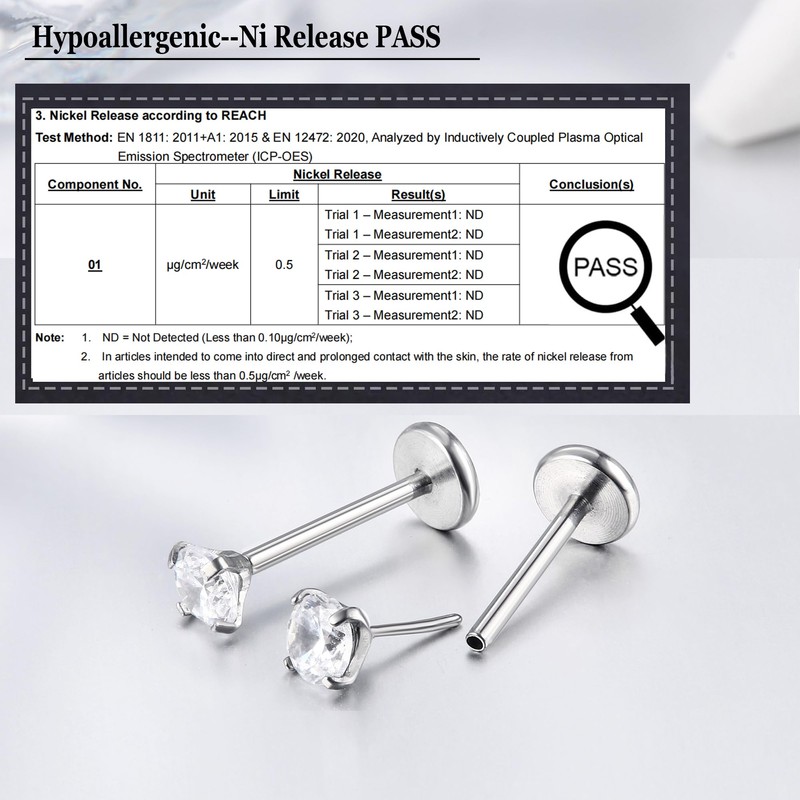 • Titanium piercing jewellery: 2 pieces premium titanium push-in lip piercing jewellery, hypoallergenic and nickel-free, harmless to your piercing skin. Our labret studs are not only hypoallergenic, but also durable and durable, so you have a comfortable wearing experience every time.