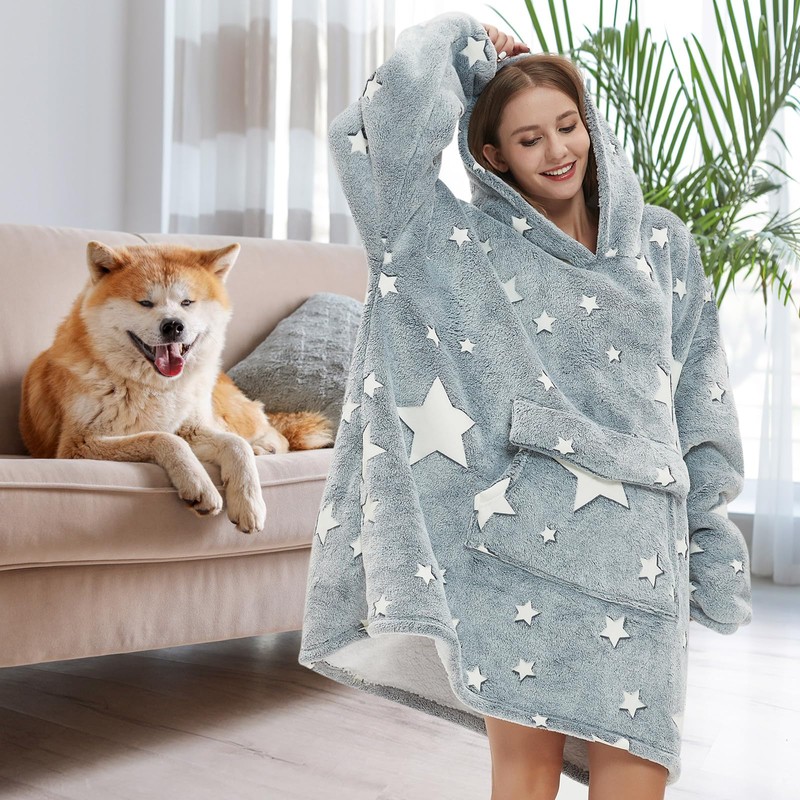 Fiosnow Glow in the Dark Star Blanket Hoodies for Women and Men Adult Oversize Wearable Blanket Hoodies for Soft and Warm