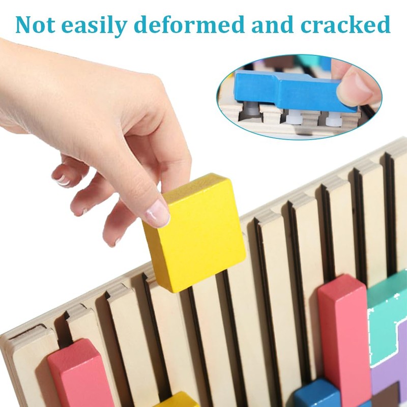 - 【Hochwertige Materialien】Dieses Holzpuzzle Tetris besteht aus sicherem Holz mit glatter Oberfläche, ist sicher und zuverlässig. Die glatten Holzelemente sind robust, splitterfrei und ideal für Kinderhände. Es ist ein hochwertiges Spielzeug zum Trainieren der Hand-Auge-Koordination, Konzentration und des logischen Denkens von Kindern.