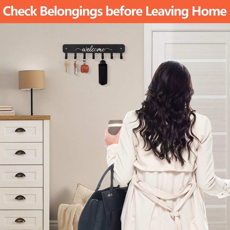 - 【Practical Storage & Home Decor】Our key holder for wall features seven sturdy hooks for storing keys, belts, headphones, sunglasses…It adds rustic charm to your home while providing practical organization. Use it on its own or as part of your decor. Keep your space tidy and stylish with this functional metal key holder.