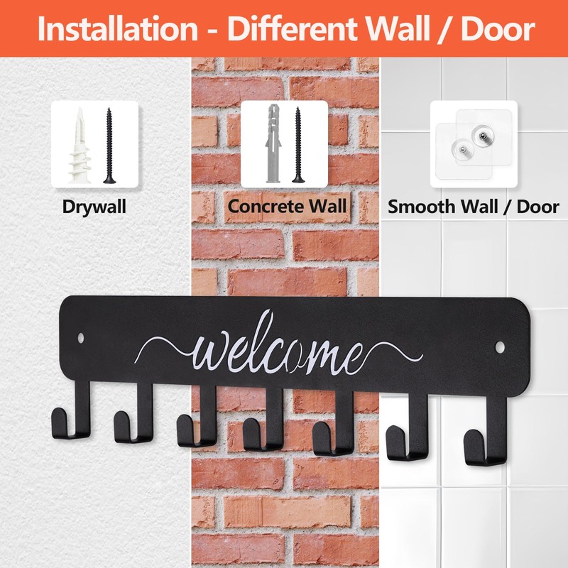 - 【Easy to Install】 Entryway key holder for wall package includes 2* concrete anchor, 2* drywall anchor, 2* screw and 2* punch-free screw sticker. The keys hanger for wall is easy to install by following the installation steps in the instructions.