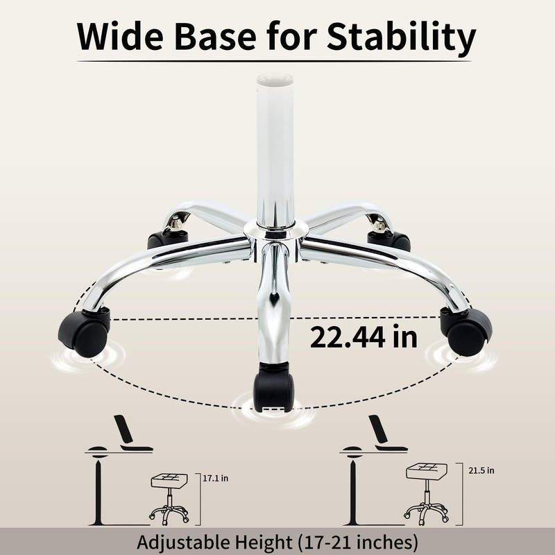 - Adjustable Height: Adjustable height range of 17 to 21 inches, this stool easily fits a variety of desks and workbench heights, ensuring comfort for users of different statures. Its versatility makes it ideal for use in nail salons, barbershops, and beauty salons