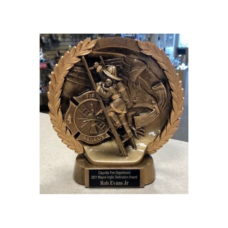 FIRE DEPARTMENT FIREFIGHTER GOLD RESIN AWARD TROPHY 7" FREE ENGRAVING FAST SHIP