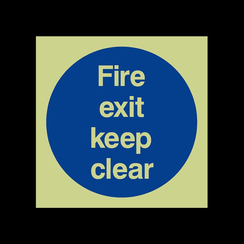Fire exit keep clear Photoluminescent Plastic Sign - Fire Escape, Keep Locked, Closed, Stairs, Clear, Automatic