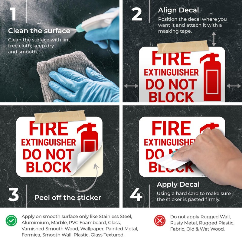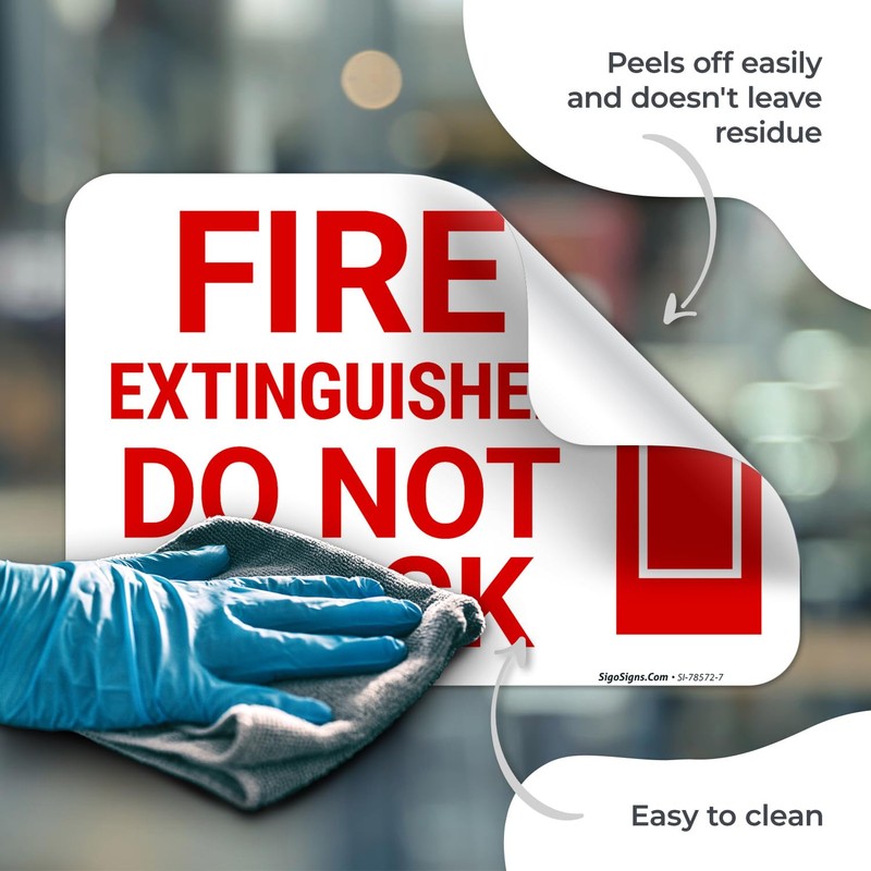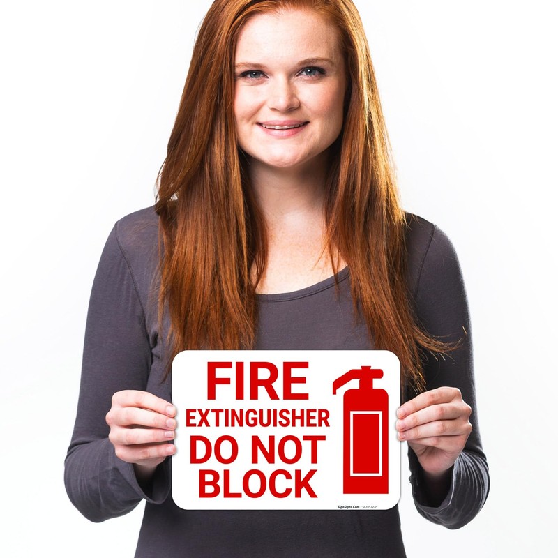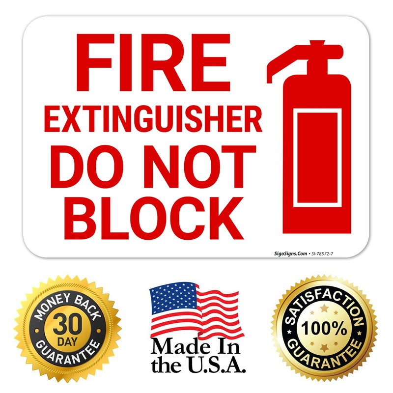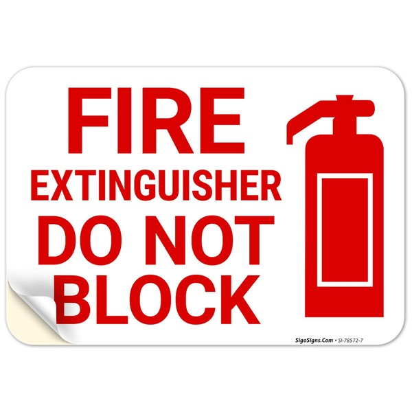 Fire Extinguisher Do Not Block with Graphic Sign, 10x7 Inches, 4 Mil Vinyl Decal Stickers Weather Resistant, Made in USA