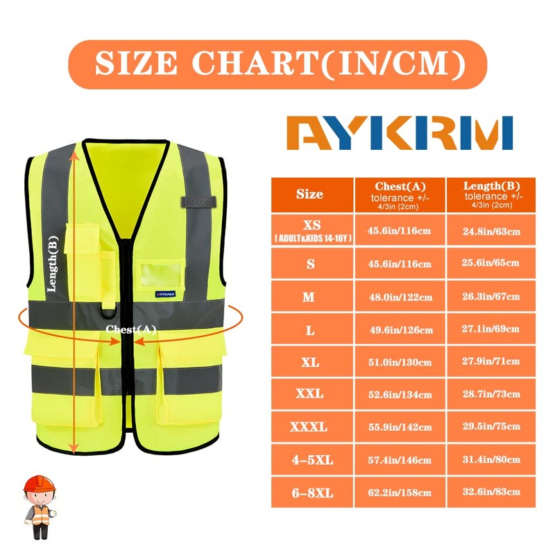 - 【SIZE】Hi vis vest SIZE: Our safety vest size chart is based on regular body shape. If you need a loose fit, it is recommended to buy 1-2 sizes larger。