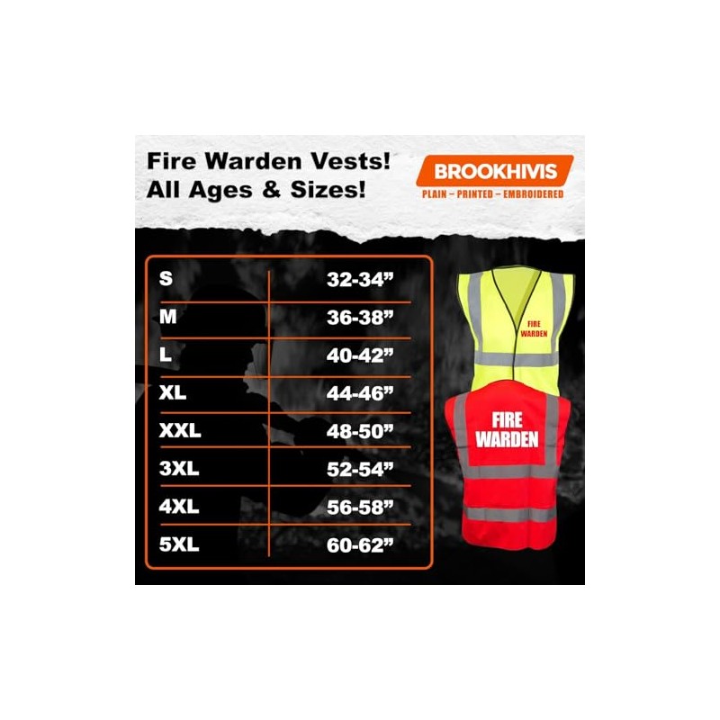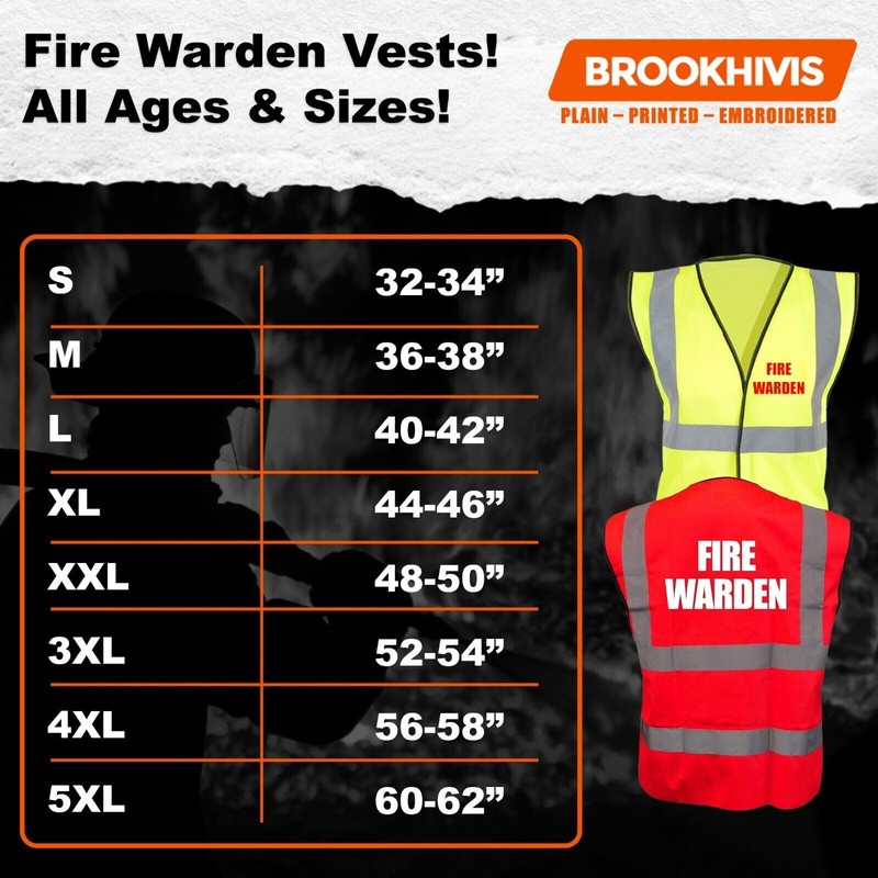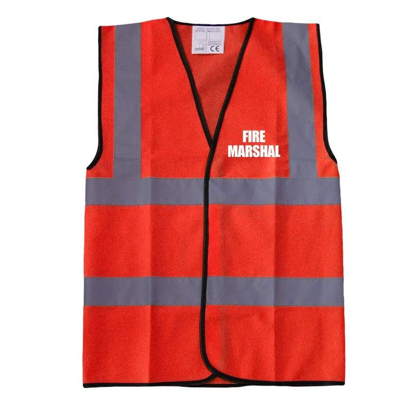 FIRE MARSHAL Red Hi Vis Viz Reflective Vest Waistcoat Printed Front and Back Safety Workwear- Printed By Brook Hi Vis, Large