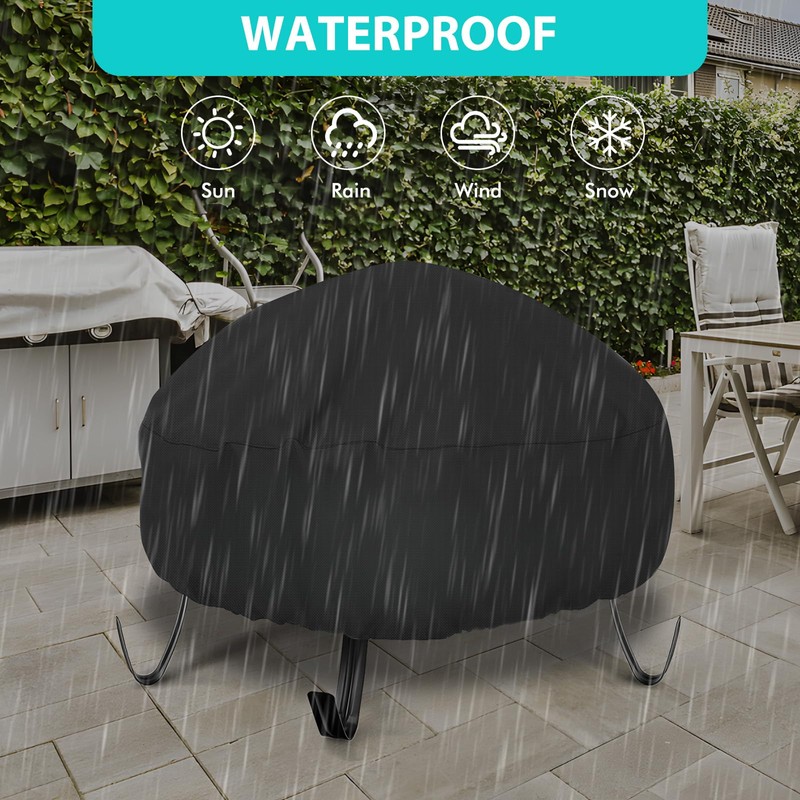 Key Features and Benefits: The cover is waterproof and rip-proof, ensuring long-lasting protection. With a drawstring for a secure fit, it keeps your fire pit safe from rain, snow, and debris. Available in black, it complements any outdoor setting and adds a touch of elegance to your garden.