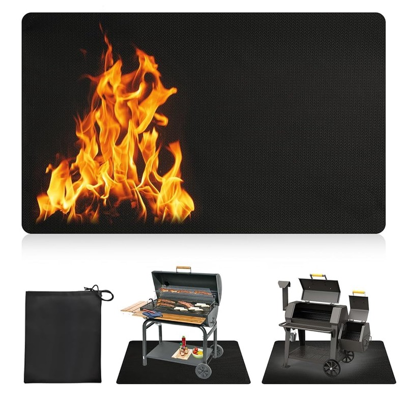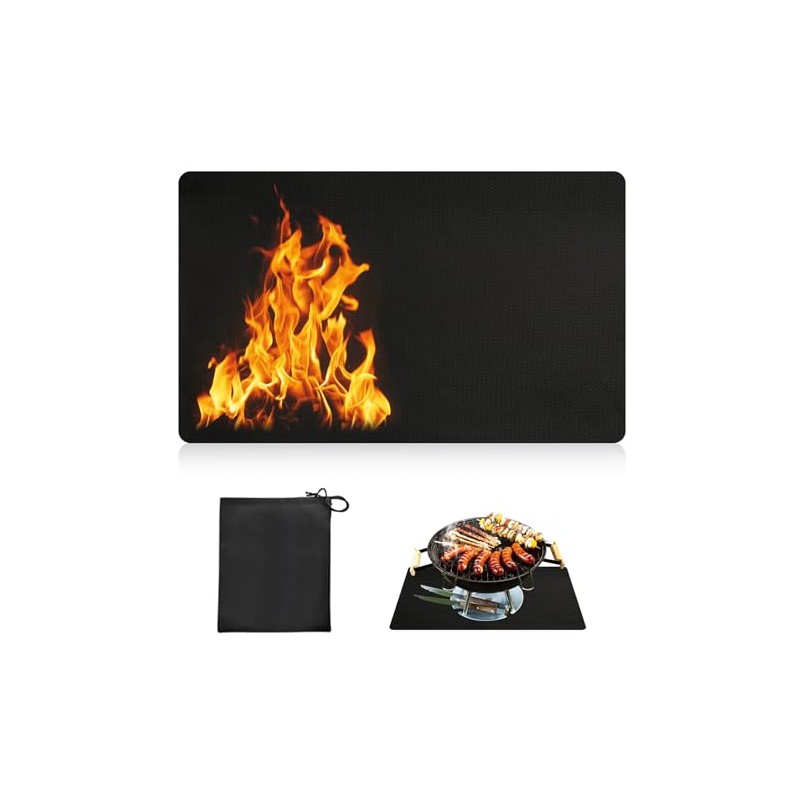 - 【Wide Application】Suitable for various barbecue grills, smokers, tent stoves, fire pits, fireplaces, stoves, and other outdoor heaters & fire pits, this heatproof mat can keep your floor and grass safe from fire, water splash, grease splash, spill or stain. Must have accessory for outdoor camping, barbecue