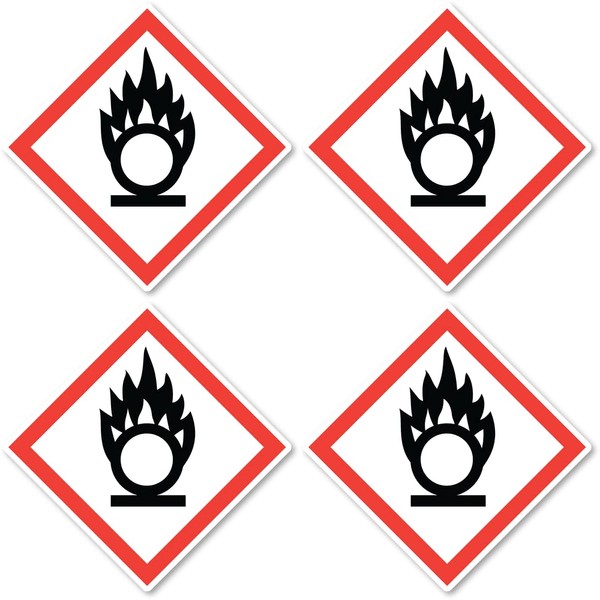 Fire Promoting Danger Symbol UN/GHS Hazard Pictogram Sticker 10cm Pack of 4
