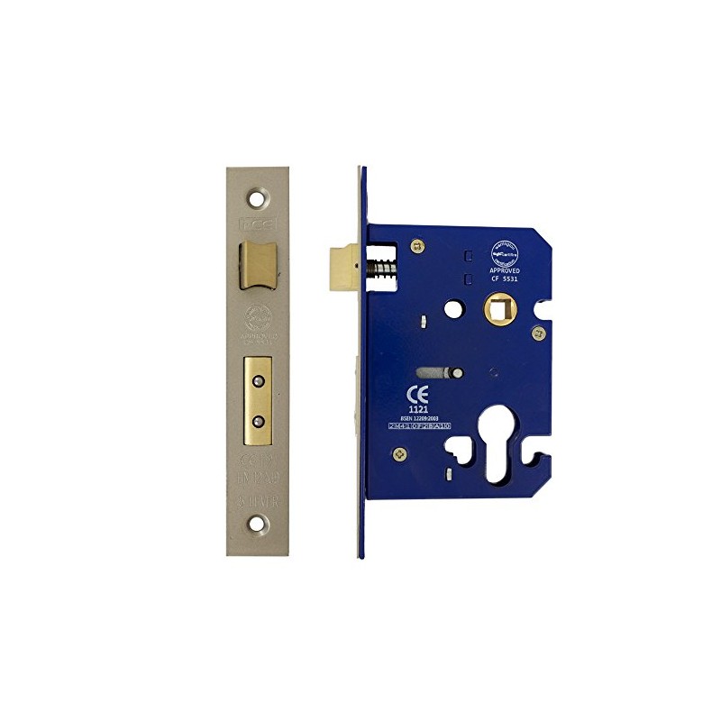 Fire Rated Euro Profile Sashlock Case 75 mm (57 mm Backset) Satin Nickel