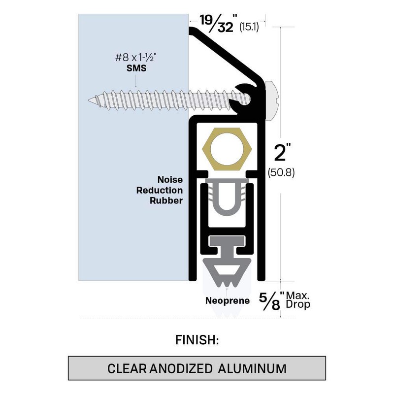 Fire Rated/Light Duty/Surface Mounted Automatic Door Bottom (7123CA) with Solid Rubber Extrusion, SMS # 6 x 1'' Supplied, (30'' L x 19/32" W x 2" H)