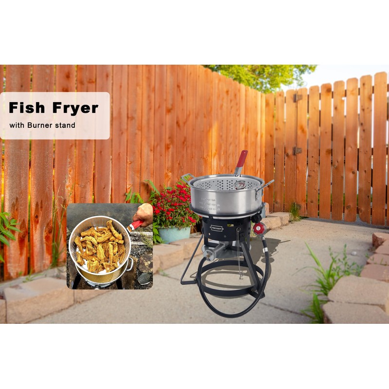 - Multi-Functional: 10QT fish cooker can be use for frying fish, fries, shrimp, Chicken, and many other foods. Compact size for outdoor camping and traveling