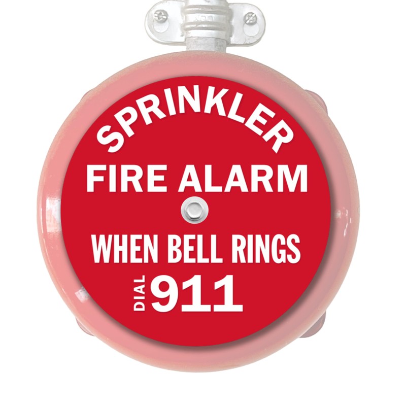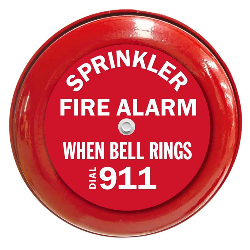 Universal Fire Sprinkler Alarm Bell Sign - 7" Round - Rings When Sprinkler Activated - Fits Bells 6" to 10" - Easy Bolt Installation