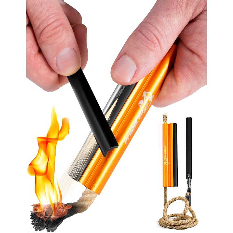 Fire Starter Survival Tool - All-in-One Patented Flint and Steel Fire Starter Kit - Ferro Rod Fire Starter with 36" Waterproof Tinder Wick Rope and Steel Fire Striker | Prepared4X | PREPARED4X