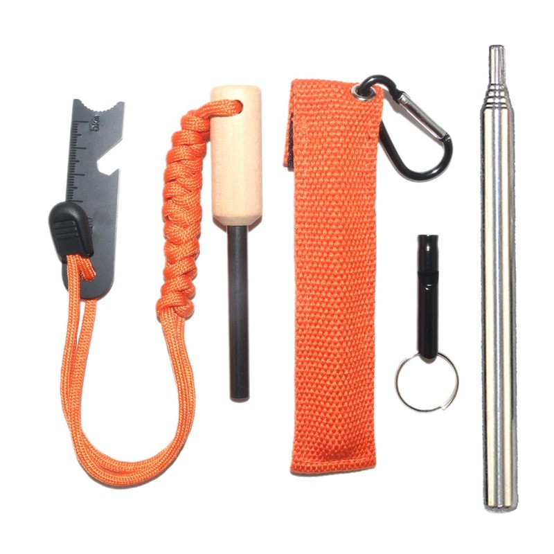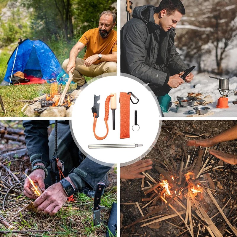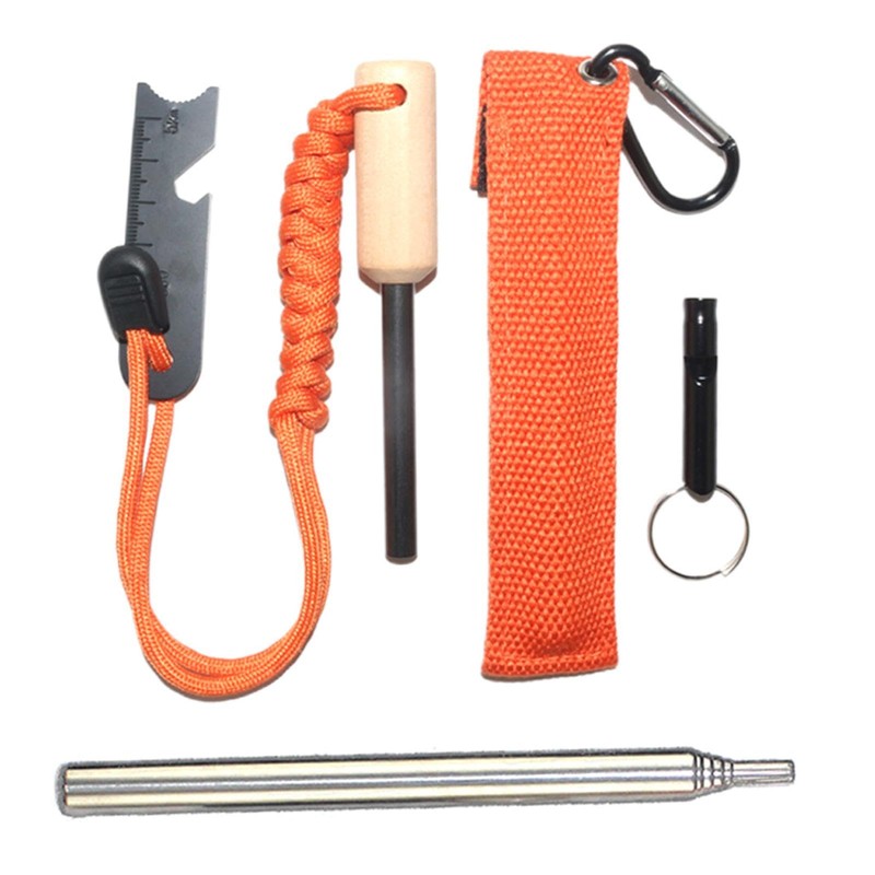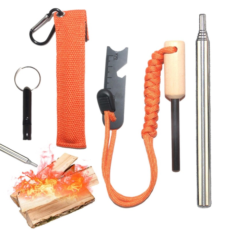 Fire Starter Survival Tool Kit | Survival Kits | Carabiner Clip, Portable Survival Whistle, Survival Tools for Camping, Outdoor, Backpack