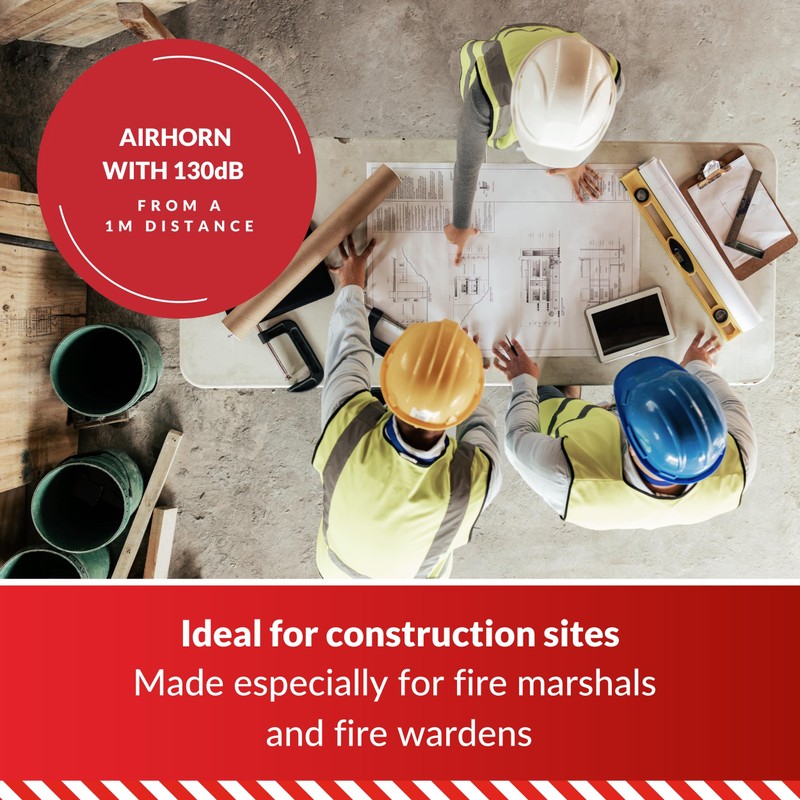 - GAS AIR HORN FOR CONSTRUCTION SITES & POP-UP EVENTS: Raise the alarm and cut through the noise with an air horn that produces a 110dB sound at a 2-metre distance. Gas air horns provide a loud and reliable form of alarm. Simply press the horn down to release the gas and sound the alarm. These horns are ideal for large or noisy temporary spaces such as building sites as well as short-term workplaces like expos or conventions.