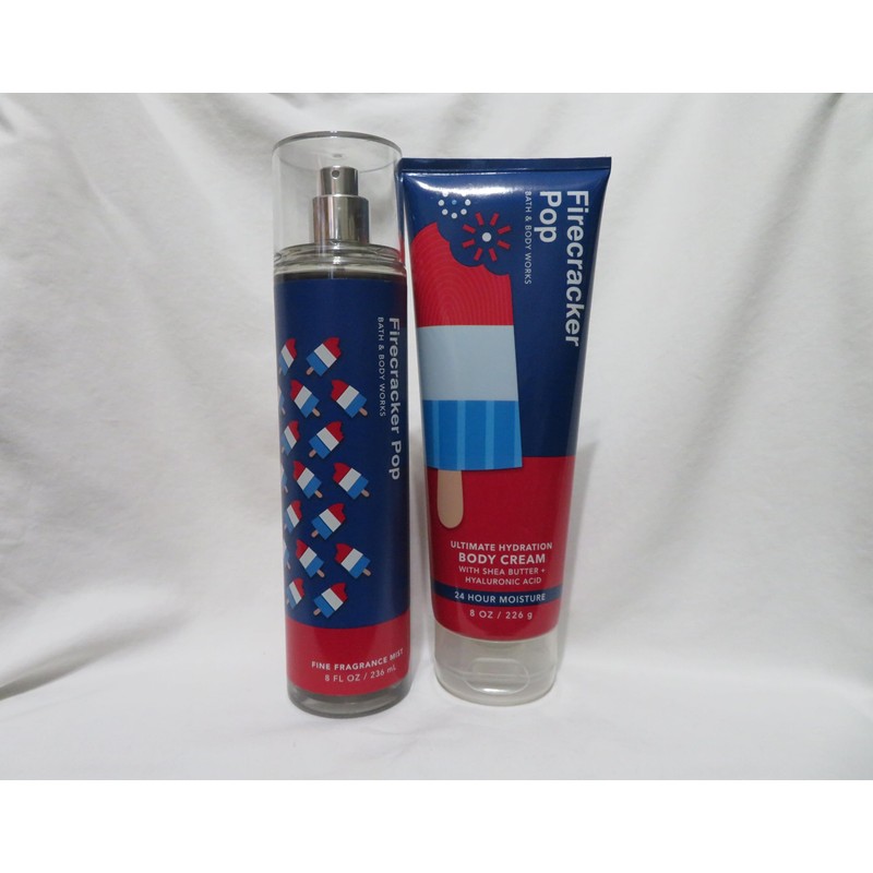 Firecracker Pop Bath Body Set, Fine Fragrance Mist 8 fl oz, Ultimate Hydration Body Cream 8 oz with Shea Butter, 24 Hour Moisture