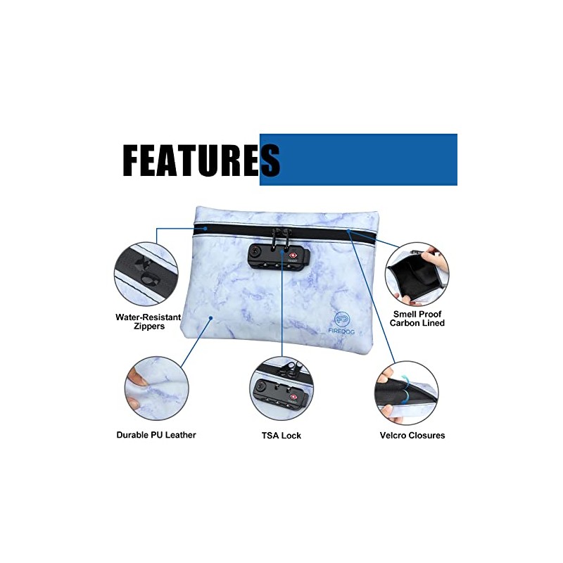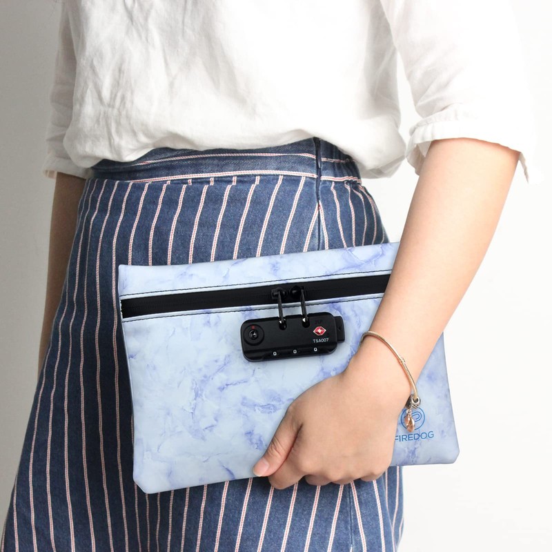 FIREDOG Smell Proof Bag with Combination Lock, 6x9 Odor Proof Pouch Case Container for Travel Stash Storage (Marble Purple)