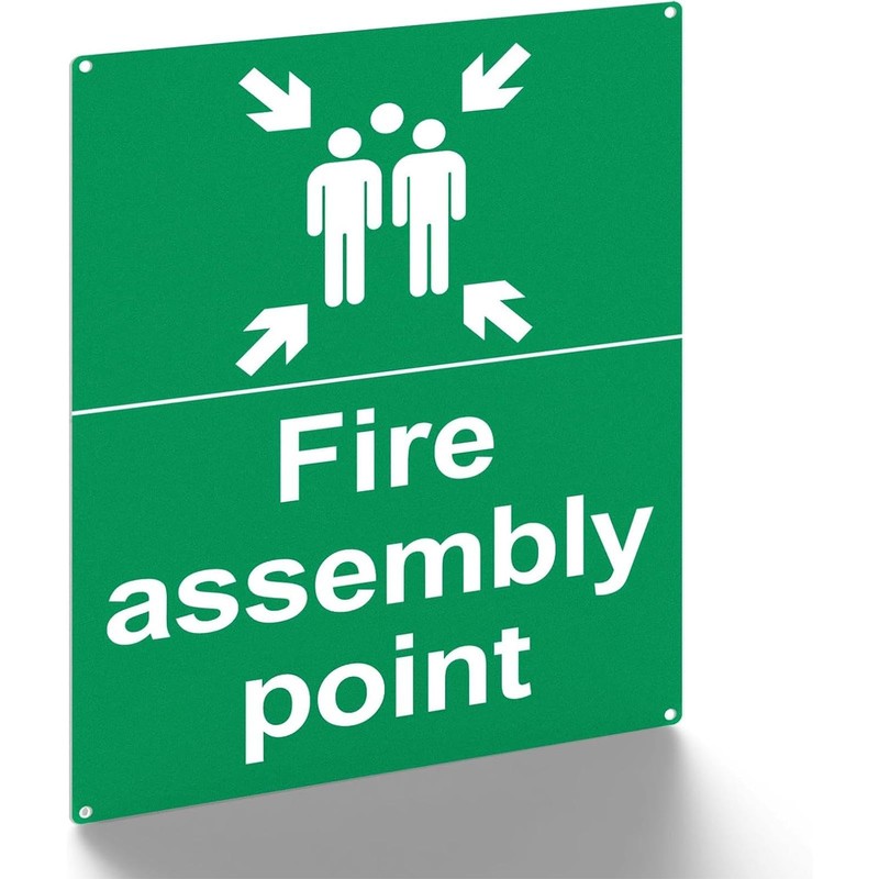 - Safety Made Clear : This fire safety signs collection includes our assembly point sign with clear text and graphics on a bright green background. The white pictogram stands out, helping everyone quickly spot your designated safety gathering point.