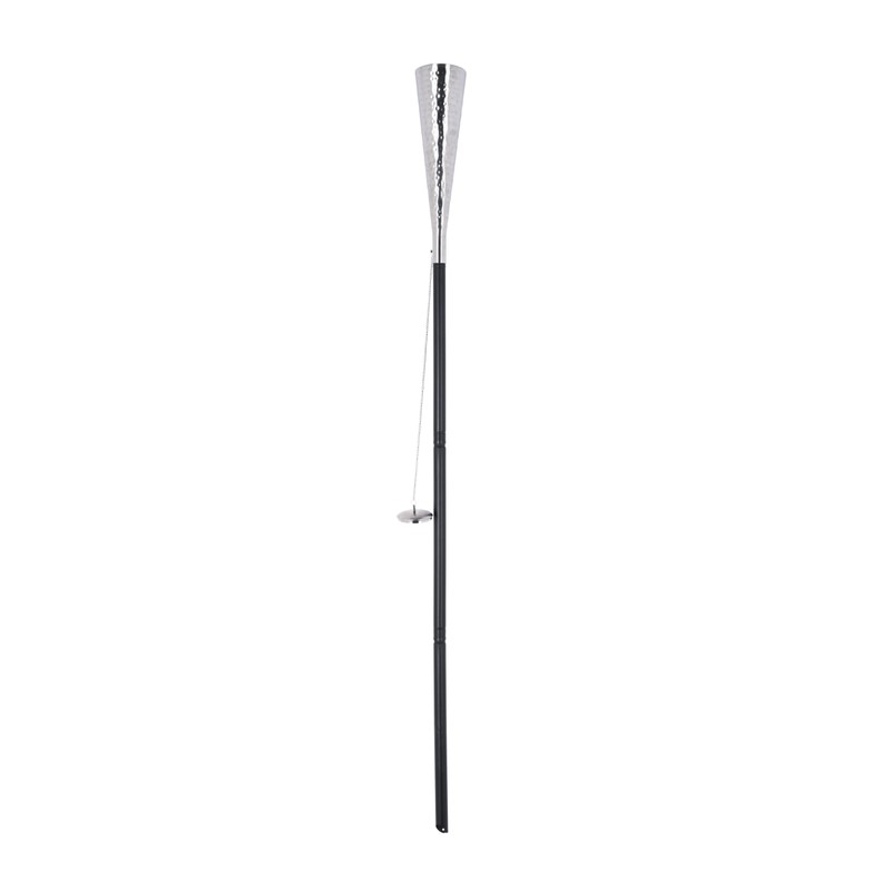 - SLEEK, MODERN DESIGN – Elevate your outdoor ambiance with a cone-shaped hammered stainless steel torch head that blends contemporary elegance with lasting beauty.