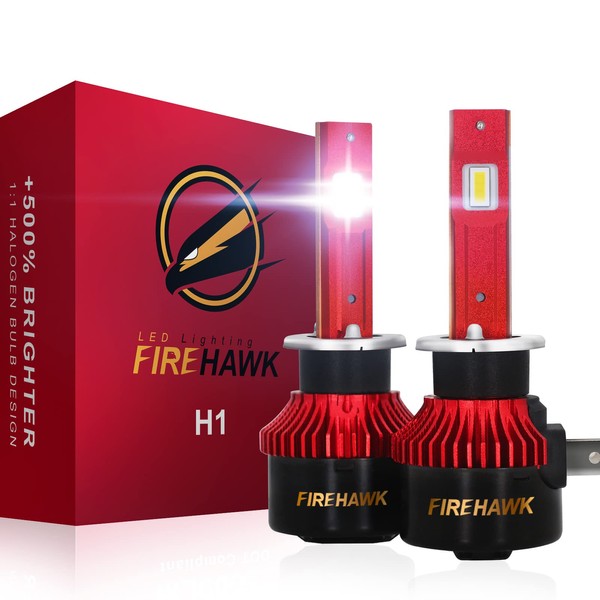 Firehawk 2024 New H1 LED Bulbs 25000LM 500% Brighter 6000K Cool White Japanese Chips IP68 Waterproof Fog Light, Pack of 2