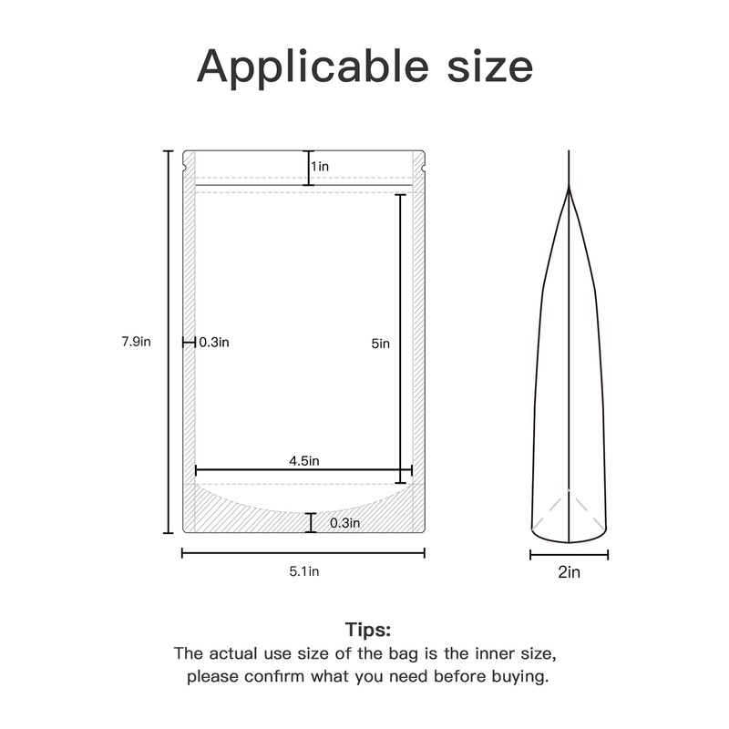 - 【Cantidad y material】El paquete incluye 100 piezas de bolsas de pie mate. Dimensión exterior: 5.1 x 7.9 pulgadas, dimensión interior: 4 x 5.9 pulgadas; Hechas de plástico apto para alimentos, que es inodoro, reutilizable y resistente a la humedad, mantiene la frescura de sus productos. Prácticas bolsas para empacar productos.