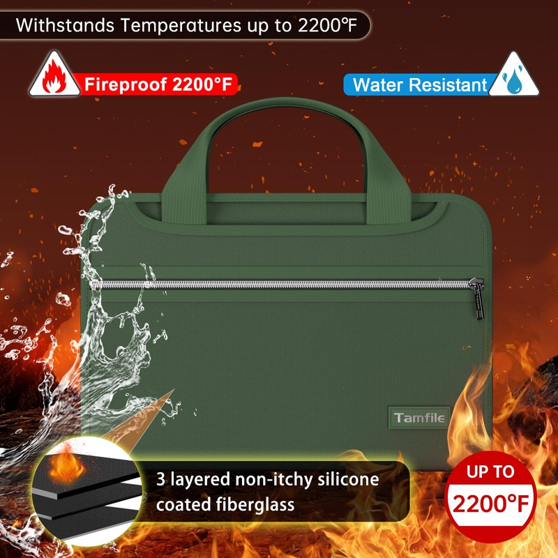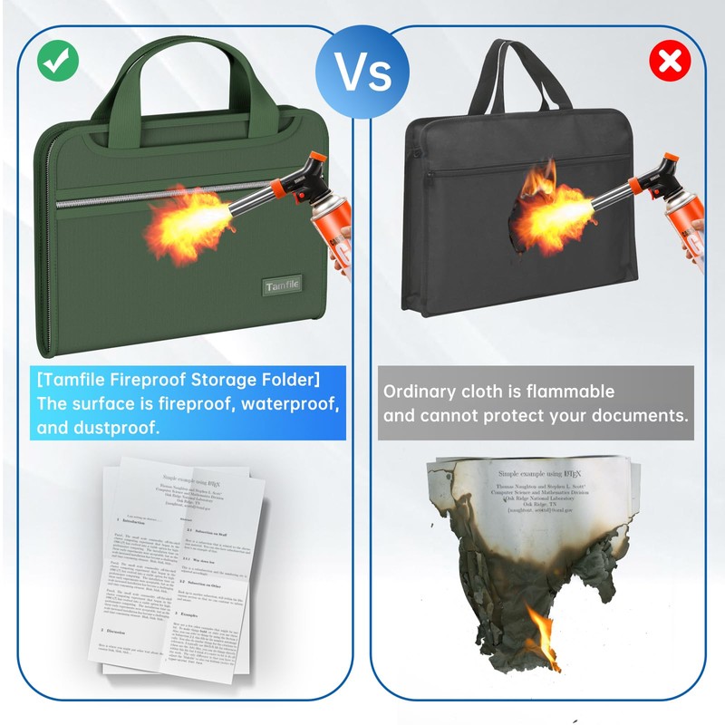 • Tamfile Fireproof Storage Folder: Fireproof, Waterproof, Dustproof. The folder surface is made of upgraded silicone glass fiber fabric with fireproof and waterproof properties, capable of withstanding temperatures up to 2200°F and passing SGS testing (UL94 certification).Fireproof multifunctional folders are suitable for storing and organizing your valuable materials certificates, birth certificates, important documents, office supplies, picture albums, drafts, etc.