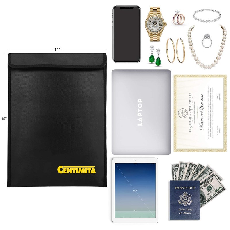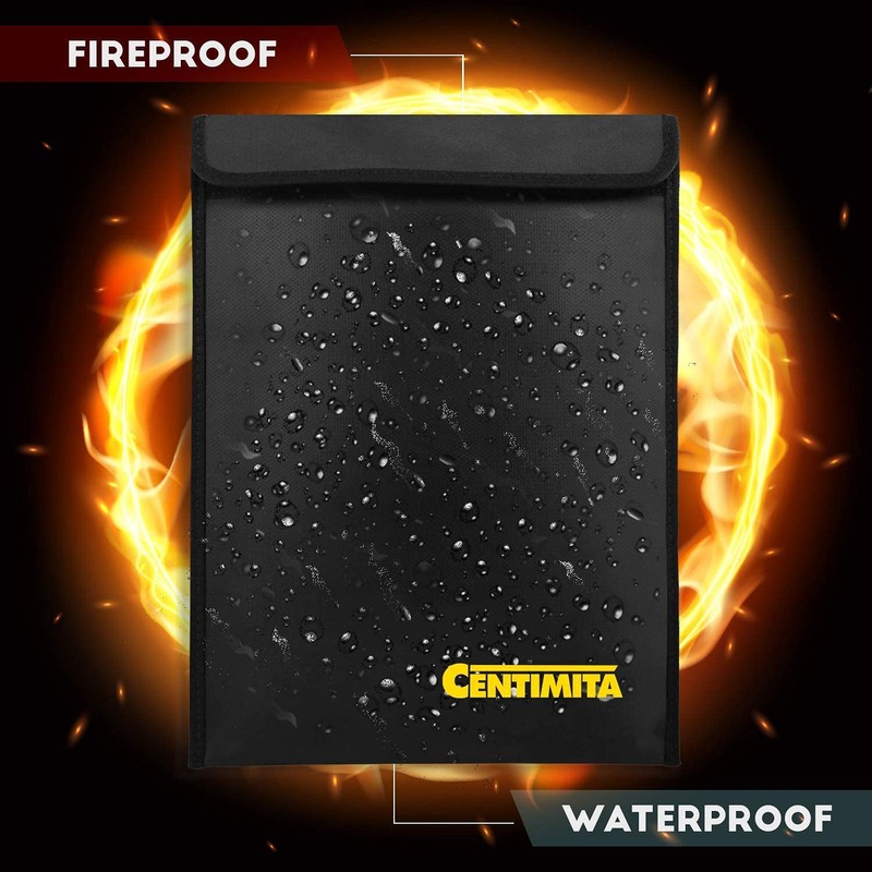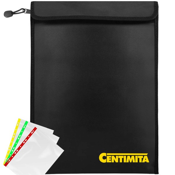 - [FIREPROOF & WATERPROOF SAFE BAG] Centimita Fireproof Document Bag made of 3 layers high quality silicone coated fiberglass materials to keep your valuables 100% fire proof and water proof. Strong Velcro design and best quality Zipper closure allows to store your documents safe not only in the underwater pressurized environment but also it stands up to 2000℉. In addition, our fireproof & water resistant safe bags comes with 3pcs document protectors to keep valuables clean and organized