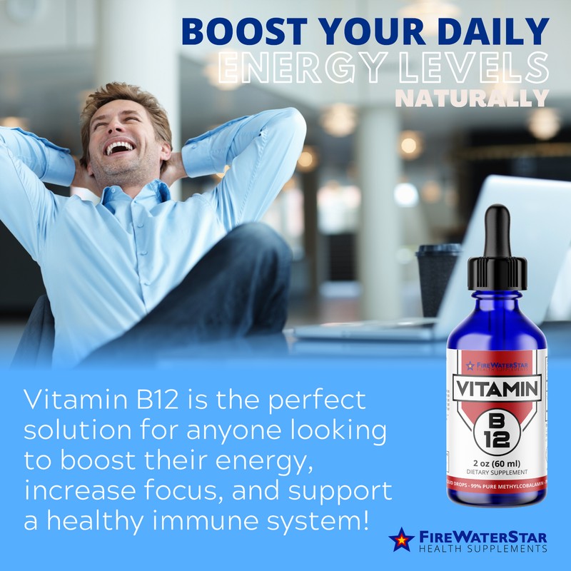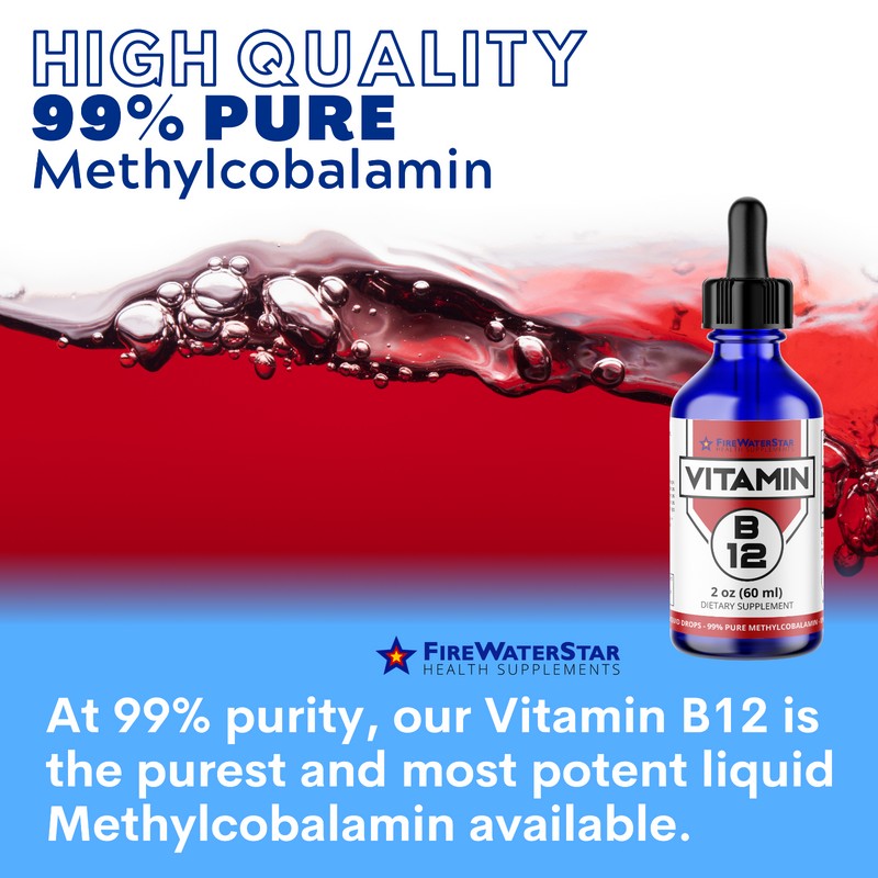 FireWaterStar Health Supplements Vitamin B12 Liquid Drops - 99% Pure Methylcobalami