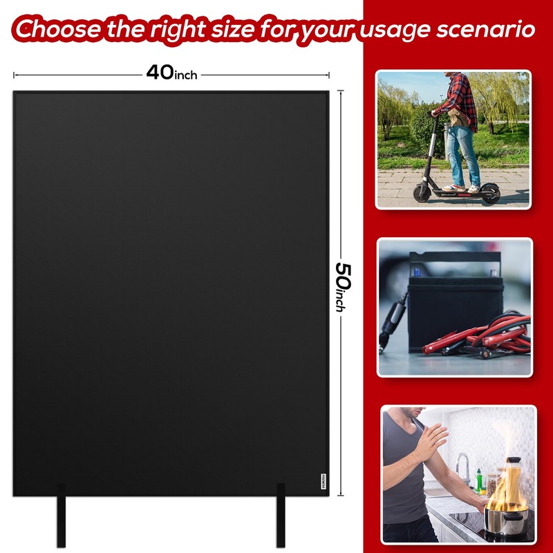 FIREWESS Lipo Battery Fireproof Cover Battery Safe Blanket for Ebike and Escooter Storage,Charging and Discharging, EV Fire Blanket for Lithium Battery (40x50 inch)